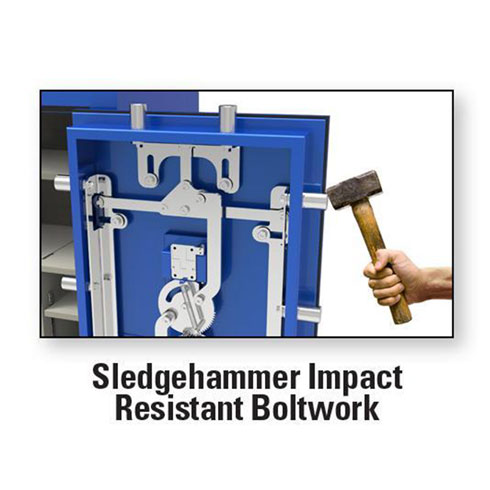 Now let’s talk about the latest improvements that truly put this safe at the top of the list in terms of security. New for 2020, AMSEC now has advanced independent locking bolt works that are sledgehammer and punch-proof with all individual locking bolts operating separate from each other on a 4-way gear driven boltwork locking system. You get fourteen corrosive resistant 1.5″ solid steel locking bolts that lock into a double reinforced steel frame making this the industry’s best pry-resistant boltwork.